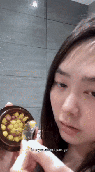 Medicube recommends scooping out more gel and fewer capsules for oily skin, an equal amount of gel and capsules for dry skin, and more capsules and less gel for combination skin.