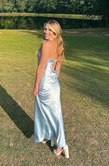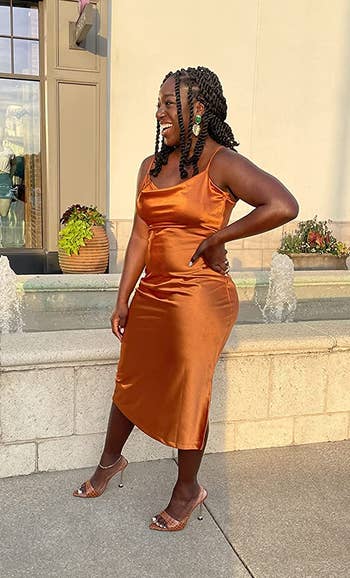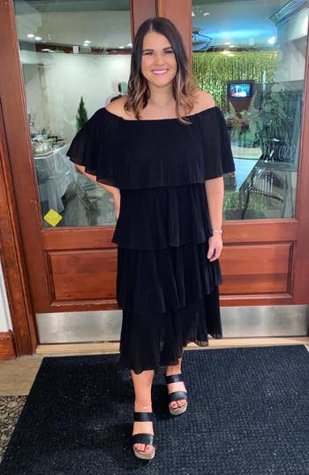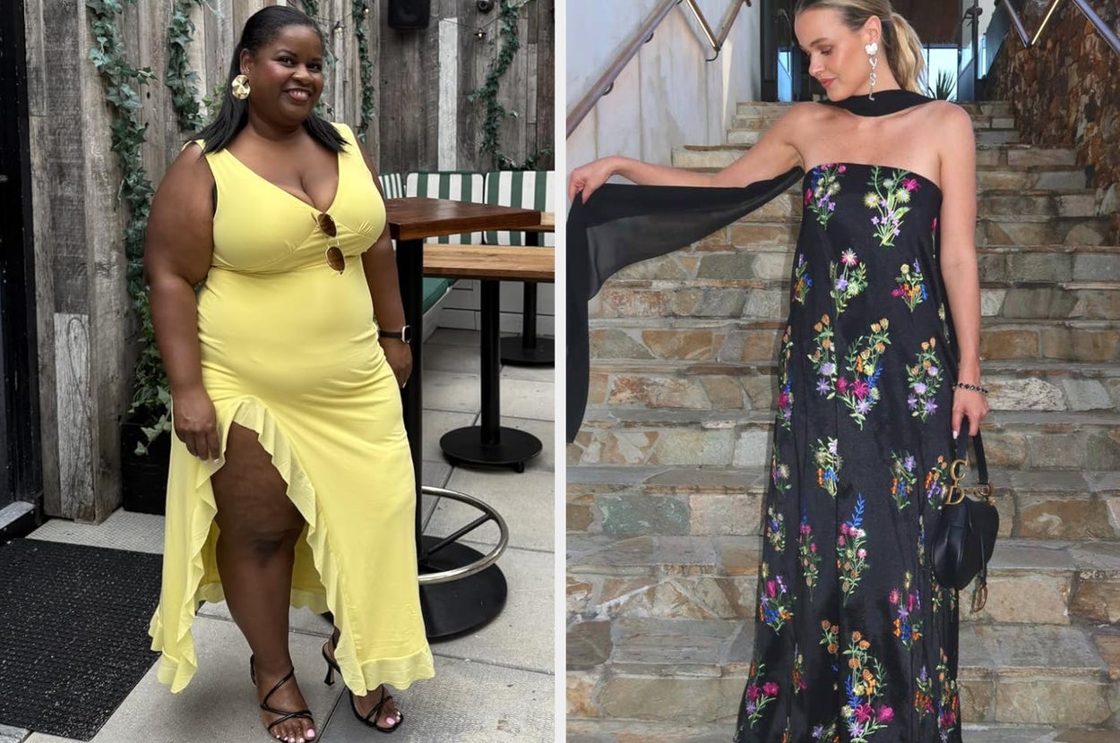 We hope you love our recommendations! While every product is independently chosen by our editors, BuzzFeed and our publishing partners may collect a share of sales or other compensation from the links on this page. You can read more about how our affiliate partnerships work in our Editorial Standards & Ethics Guide. The title of “Best Dressed Wedding Guest” will be earned if you’re wearing one of these gowns... trust me. I'm Amanda Davis (she/her), a Shopping & Products Editor at BuzzFeed who specializes in many topics, including beauty, fashion, home decor, and my personal favorite — small businesses. Whether you're the invited wedding guest or a plus one, are attending your work bestie's big day, or the nuptials of your third cousin twice removed (you haven't talked in a while, but it's polite to go, right?) — semi-formal is semi-formal. Meaning the attire is elegant, but not black tie. Comfortable, but not casual. And it's only right that you stick to the happy couple's request. Think strapless satin gowns, chiffon cocktail dresses, and pretty off-the-shoulder numbers. If one of the numerous wedding invites piling up on your counter has semi-formal noted as the dress code, take a look at the options below! Unless otherwise specified, all sizes in this post are listed in women’s. This breathable chiffon pleated off-the-shoulder dress has tiers that'll make you want to dance the night away just to show off how great the ruffles look when you twirl. When "I Wanna Dance With Somebody" comes on — that's your cue to work it! Promising reviews: "I got sooo many compliments on this dress, and I felt super comfortable and stylish while wearing it! I got the blue one, and it's the perfect color for the beach or a summer event. The material is lightweight, and it moves gracefully while you walk. You can wear off the shoulder or on the shoulder." —Kristy and Norris Hartog "Love this midi/maxi off-the-shoulder ruffle dress, it's perfect for spring, summer, and vacations! I personally would style it up for summer weddings too! The fit is great [and] the ruffle is definitely trending, highly recommend." —Nikita C. Get it from Amazon for $19.75+ (available in sizes S–M and six colors). A flowy floral number is a great option because, no, semi-formal doesn't have to mean structure and no fun. This dress is giving "dark romance" vibes, with just enough detail (aka the tiered skirt) to move beautifully in the wind. Impromptu photoshoot, anyone? Promising review: "Really love this dress! Super attractive and incredibly comfortable. Just the right amount of stretch. I sized down because I have a smaller bust, and it still fits my sizeable backside lol. Highly recommend!" —KaytlynR Get it from Torrid for $63.92 (originally $79.90; available in sizes 12–30). Is it just me, or is this double-lined strapless satin dress the type of gown you'd wear to step out of the limo as a Bachelor contestant? ...I guess you can also just wear it to your co-worker's wedding (whichever comes first). The back strap is stretchy too, ensuring it fits you just right. Promising reviews: "I ordered this last minute for a formal event, and let me tell you, I was pleasantly surprised! It runs true to size and [fits] you in all the right places... a MUST-BUY!" —Ryan "My new FAVORITE wedding guest dress. This dress was soooo perfect for our friend's summer wedding...The material is so thick and beautiful. I received sooo many compliments in this dress." —Amazon Customer Get it from Amazon for $50.99 (available in sizes XS–XL and in 30 colors). For those looking for something bold, this V-neck ruffle slit maxi dress will make you feel like the dance floor's disco ball with the amount of people gravitating toward you all night. Reviewers of various body types say this beauty is SE-XY, fun, comfortable, and makes them feel fantastic when they have it on! Promising review: "I would recommend this dress to every person I know. The material was super soft and stretchy. It can be worn for a formal or casual wedding. It wasn’t see-through at all and had two layers of thickness. The quality of this dress was great. Super functional for exactly what I needed." —Sydney Cordeiro Get it from Amazon for $40.49+ (available in sizes S–XL and 17 colors). Bring the drama in this satin gown! It has flutter sleeves that turn into ever-flowing ruffles and a hem length that'll reach the ballroom floor. If you're looking for a statement piece, this is the one. But be warned, all statements from other guests will be of the compliment variety. Promising reviews: "RUN to buy this dress. I bought it for a wedding and honestly wasn’t expecting much as I have never ordered from Cider before; however, the dress is BEAUTIFUL. It fits perfectly, and I felt so gorgeous the whole day; I got so many compliments on it with everyone asking where it was from. It’s the perfect length, and what I love is that it actually hugs my waist, which is what some silk dresses lack. Honestly, my favorite dress that I own!!" —Cider Customer Get it from Cider for $47.90 (available in standard sizes 0–10 and eight colors, and plus sizes 12 and 20–24 in pink). This pretty chiffon maxi dress has a fun open back, billowing sheer sleeves, and a *stunning* frilled waist that brings in a soft and delicate feel to this elegant look. Get it from Boohoo for $42.40 (originally $106; available in sizes 12–18 and 22–24). Everyone needs a midi-length satin dress with a cowl neck in their closet, but this one is budget-friendly and stunning all the same. Also, it may just be the easiest stylish outfit there is. A satin dress with sneakers during the day is edgy, but a satin dress at night? Epic! And FYI, there are TONS of pregnant reviewers who are obsessed with the amount of stretch this dress has. Promising reviews: "This dress is super gorgeous and totally worth the money! TikTok made me buy it, and it was on sale, so even better. The fabric is al