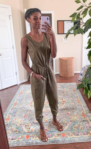 Promising review: "I absolutely love this romper. The stretch is amazing! I originally ordered a large based on reviews, and it was way too big, so I decided to order the medium, and even that was big, so I decided to order one more time and did the small, and that fit perfectly! This romper is sooo comfy, perfect for traveling, running errands, or just lounging in." —Yvonne