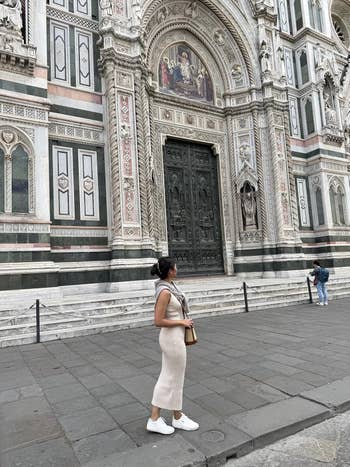 Again, stretchy clothes are key when traveling to Italy. But you also want to keep it cute and stylish because lemme tell you the Italians don't play about fashion. It's so funny how easy it was to spot tourists in a crowd of Italians, partially because they just wear their clothes so well. And it's not like they were wearing anything fancy — it could just be jeans and a tee, but I'll tell ya, they worked that basic jeans and tee like the rent was due today at 5 p.m. sharp, OK? But this rec is more for the fact that being on a long flight can be v uncomfortable. So, you definitely want a flying outfit that gives you that sweatpants-level comfort while also allowing you to look put together. This sleeveless, high-waisted gem is full-length with an elastic waist, easy to put on and take off, and has real pockets (!!!) to keep your boarding pass, phone, and ID handy. Just pair with a light cardi, and you'll be the definition of cozy travel chic.